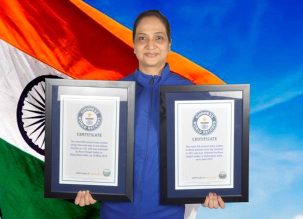 भारतीय सेना में कार्यरत कर्नल की पत्नी श्रीमती किरण उनियाल ने महिला वर्ग में “तीन मिनट में एक पैर के घुटने से 263 वार” और “एक मिनट में बारी-बारी से दोनों घुटनों से 120 वार” करने के दो व्यक्तिगत गिनीज वर्ल्ड रिकॉर्ड बनाए हैं। इसके पहले इसी वर्ग में 177 वार और 102 वार करने का रिकॉर्ड था। उनके दोनों रिकॉर्डों का लक्ष्य लड़कियों और महिलाओं को आत्म रक्षा के लिए मार्शल आर्ट को प्रोत्साहन देना है। “तीन मिनट में एक पैर के घुटने से 263 वार” का रिकॉर्ड बनाने के क्रम में उन्होंने पुरुष वर्ग के 226 वार के मौजूदा रिकॉर्ड को पीछे छोड़ दिया है।