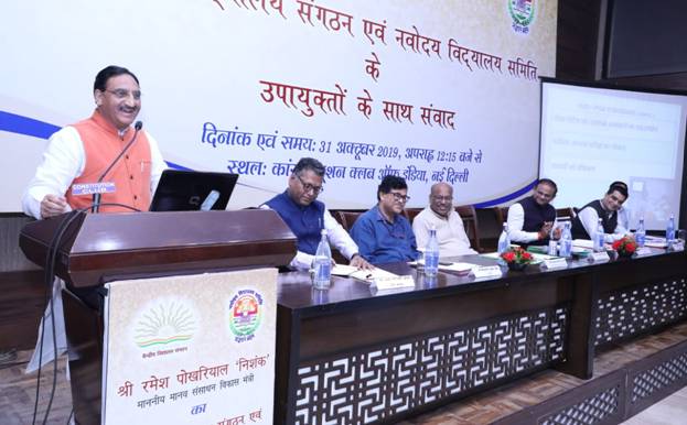 केंद्रीय मानव संसाधन विकास मंत्री श्री रमेश पोखरियाल ‘निशंक’ ने मानव संसाधन विकास राज्य मंत्री श्री संजय धोत्रे की उपस्थिति में आज नई दिल्ली में केंद्रीय विद्यालय संगठन एवं नवोदय विद्यालय समिति के उपायुक्तों के साथ संवाद किया। इस अवसर पर केंद्रीय मन्त्री ने PISA 2021 की तैयारियों की समीक्षा की और सभी उपायुक्तों को इस परीक्षा में भारत को सफलता दिलाने के लिए कड़ी मेहनत करने का निर्देश दिया। इस अवसर पर केंद्रीय विद्यालय संगठन के आयुक्त श्री संतोष कुमार मल्ल एवं नवोदय विद्यालय समिति के आयुक्त श्री विश्वजीत सिंह भी उपस्थित रहे।