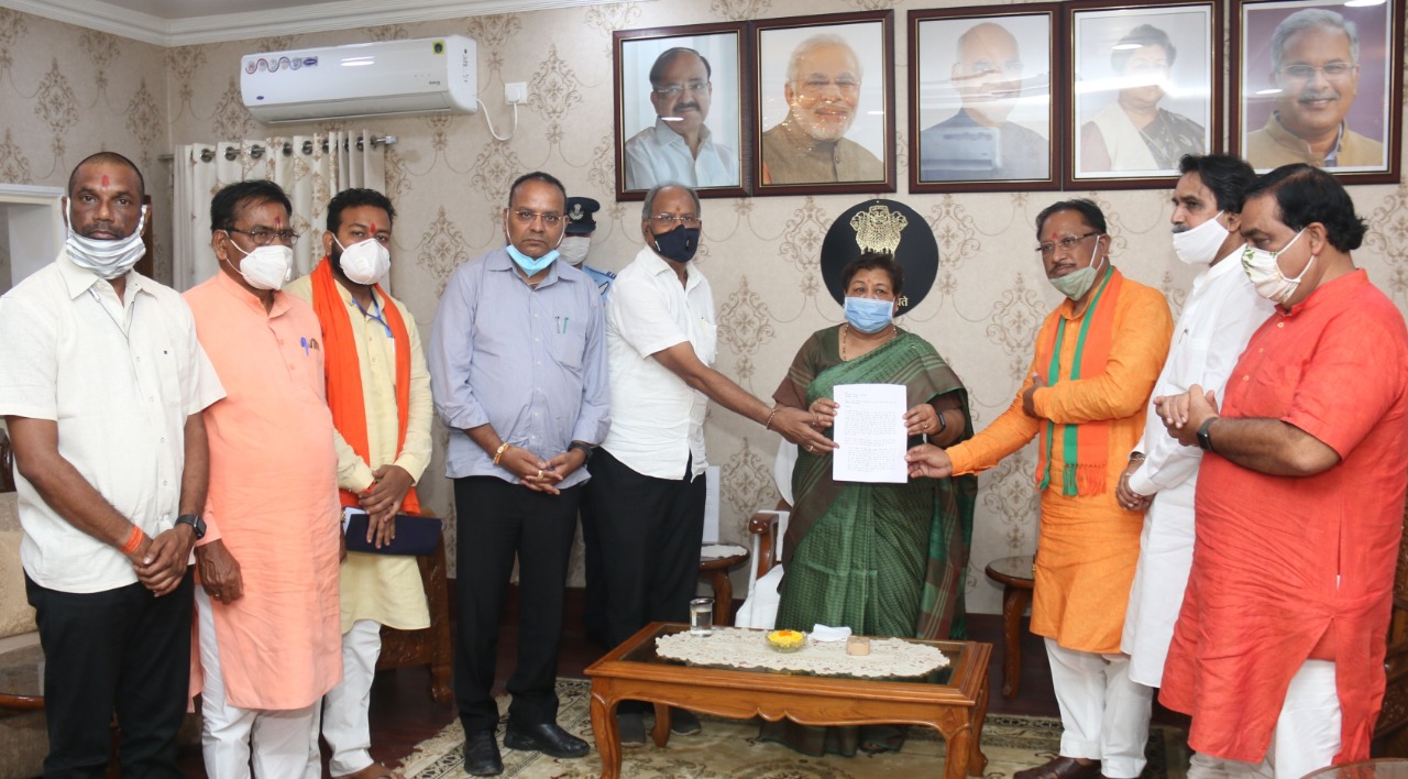 राज्यपाल को पूर्व केन्द्रीय मंत्री श्री विष्णुदेव साय के नेतृत्व में प्रतिनिधिमण्डल ने ज्ञापन सौंपा