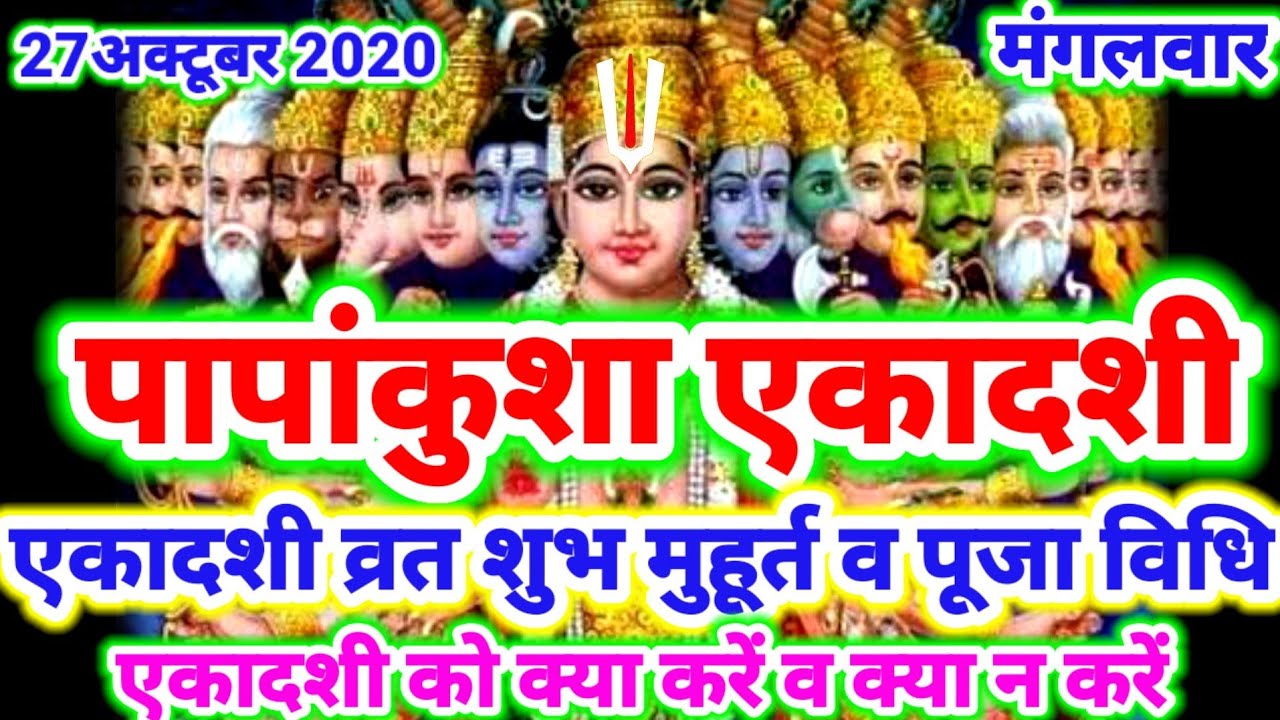 श्विन मास के शुक्ल पक्ष की एकादशी तिथि का प्रारंभ 26 अक्टूबर को सुबह 09 बजे से हो रहा है। एकादशी तिथि का समापन अगले दिन 27 अक्टूब को दिन में 10 बजकर 46 मिनट पर होगा। ऐसे में आपको पापांकुशा एकादशी व्रत 27 अक्टूबर को करना चाहिए।