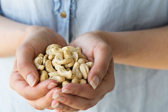 4.काजू स्किन के लिे बहुत अच्छा माना जात है, इससे आपकी त्वचा की झुर्रियां कम हो जाती है औऱ साथ ही इसमें पाए जाने वाले विटामिन ई और एंटीऑक्सीडेंट आपकी स्किन को हर तरह से फायदा पहुंचाते हैं,