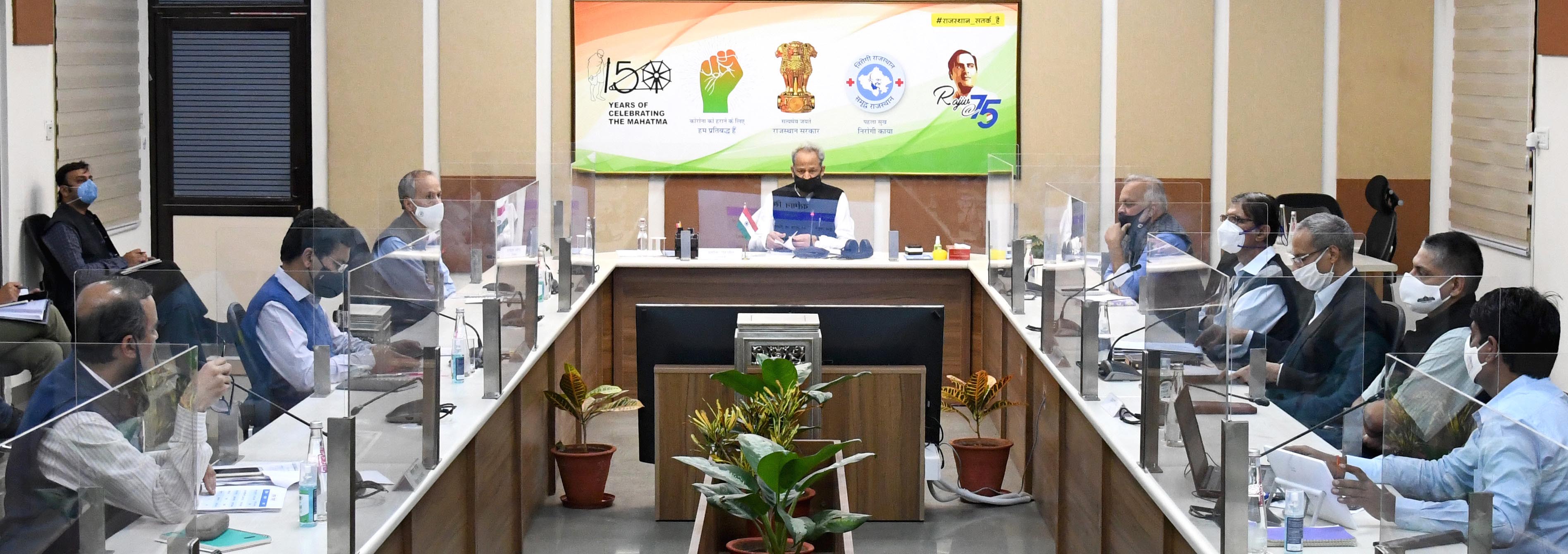 मुख्यमंत्री ने कहा कि कोई बीमारी गांव-शहर देखकर नहीं आती है। गांवों में भी कोविड-19 से अब तक 573 मौत हो चुकी हैं जो कुल मौतों का 27 प्रतिशत है, इसलिए ग्रामीणजन इस बीमारी को हल्के में ना लें। वे मास्क लगाएं और अन्य हैल्थ प्रोटोकॉल की पूरी तरह पालना करें। साथ ही, सर्दी, जुकाम, खांसी जैसे लक्षण नजर आने पर तुरन्त प्रभाव से जांच कराएं और इलाज लेने में देरी ना करें। उन्होंने अधिकारियों को ग्रामीण क्षेत्रों में भी टेस्टिंग बढ़ाने के निर्देश दिए। मुख्यमंत्री ने कहा कि कोविड रोगियों के लिए अस्पतालों में पर्याप्त संख्या में बैड उपलब्ध हैं। अगर किसी रोगी को बैड उपलब्ध नहीं होने सहित कोई भी समस्या है तो वह केन्द्रीकृत हैल्पलाइन नम्बर 181 पर सम्पर्क कर सकता है।