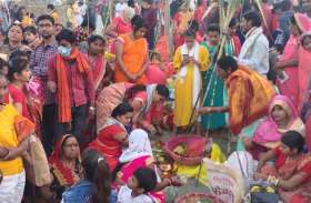 अयोध्या के सरयू घाट पर छठ पूजा को लेकर बड़ी संख्या में महिलाएं भगवान सूर्य देव को अर्घ्य देने के लिए पहुंची। जहां पर गन्ने के पौधे को नदी के किनारे गाड़कर पूजन के लिए स्थान निर्धारित किया गया और उसके बाद विविध प्रकार के पकवान इस व्रत पूजन में छठ मैया को चढ़ाया गया। हाथों में जल का कलश लिए नदी के पवित्र जल में खड़ी व्रत रखने वाली महिलाओं ने सूर्य देवता को अर्ध्य दिया और पूजन अर्चन संपन्न किया।
