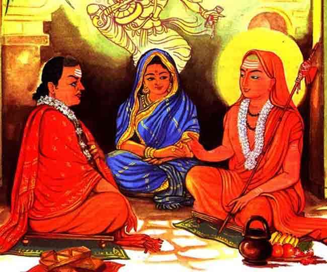 प्राचीन काल में एक बार आदि शंकराचार्य और मंडन मिश्र के बीच शास्त्रार्थ लगातार सोलह दिन तक चला। इसमें निर्णायक की भूमिक मंडन मिश्र की धर्म पत्नी देवी भारती निभा रही थी। अभी तक हार-जीत का फैसला नहीं हुआ था। इसी बीच देवी भारती को किसी जरूरी काम के चलते बाहर जाना पड़ा। देवी भारती ने जाने से पहले आदि शंकराचार्य और मंडन मिश्र के गले में एक-एक फूल माला डाल दी। साथ ही कहा कि मेरी अनुपस्थिति में ये दोनों मालाएं हार और जीत का फैसला करेंगी। इतना कहकर देवी भारत चली गईं। लेकिन प्रक्रिया पहले की तरह चलती रही।