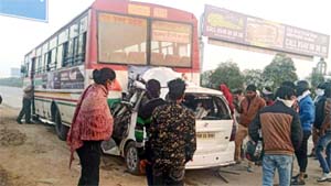 उत्तर प्रदेश के ग्रेटर नोएडा में यमुना एक्सप्रेस वे पर शनिवार सुबह दर्दनाक हादसा हुआ। आगे जा रही रोडवेज की एक बस में इनोवा कार पीछे से जा घुसी। भीषण हादसे में चार लोगों की मौत हो गई, जबकि एक शख्स घायल हो गया। घायल को अस्पताल में भर्ती कराया गया है। मौके पर पहुंची पुलिस ने शवों को पोस्टमॉर्टम के लिए अस्पताल भेजा।