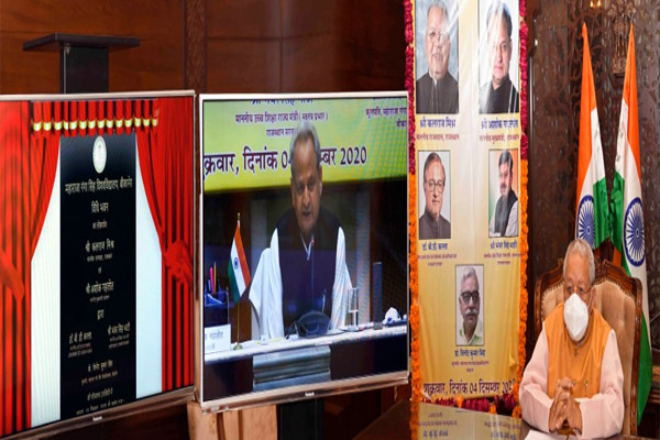राज्यपाल ने इससे पहले संविधान उद्देशिका और मूल कर्तव्यों का वाचन करवाया। उन्होंने और मुख्यमंत्री श्री अशोक गहलोत ने पूर्व में महाराजा गंगा सिंह विश्वविद्यालय के विधि और सामाजिक विज्ञान भवन का ऑनलाइन लोकार्पण किया।