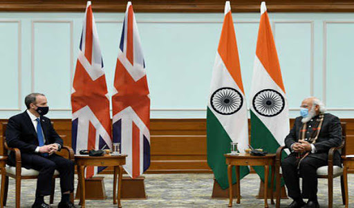 ब्रिटेन के विदेश मंत्री डोमिनिक राॅब ने आज यहां प्रधानमंत्री नरेन्द्र मोदी से मुलाकात की और उन्हें ब्रिटिश प्रधानमंत्री बोरिस जॉन्सन की ओर से जी-7 देशों की बैठक में शामिल होने का निमंत्रण दिया। मोदी ने जॉन्सन के साथ हाल ही में टेलीफोन पर हुई बातचीत का उल्लेख करते हुए कोविड महामारी के बाद की स्थिति में भारत-ब्रिटेन भागीदारी के महत्व पर जोर दिया। उन्होंने व्यापार, निवेश, रक्षा , सुरक्षा, आव्रजन, शिक्षा, ऊर्जा, जलवायु परिवर्तन और स्वास्थ्य के क्षेत्र में द्विपक्षीय संबंंधों की पूरी क्षमता तथा संभावनाओं का लाभ उठाने के लिए रोडमैप बनाने की बात कही। रॉब ने जॉन्सन की ओर से प्रधानमंत्री को शुभकामनाएं दी और हाल ही में ब्रिटेन की सह-मेजबानी में हुए जलवायु सम्मेलन में हिस्सा लेने के लिए उनके प्रति आभार प्रकट किया। उन्होंने कहा कि ब्रिटेन सरकार की साझा मूल्यों और हितों के आधार पर भारत के साथ संबंधों को मजबूत बनाने की प्राथमिकता है जिससे कि साझा वैश्विक चुनौतियों का मिलकर मुकाबला किया जा सके।