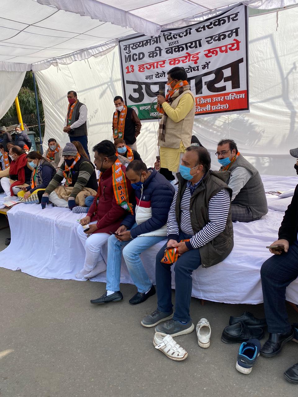 दिल्ली सरकार और एमसीडी के बीच का टकराव थमने का नाम नहीं ले रहा है। दिल्ली सरकार द्वारा दिल्ली नगर निगम कि बकाया राशी 13हजार करोड़ रूपये ना देने के विरोध मे रोहिणी मण्डल 57 के सभी कार्यकर्ताओं ने आज उपवास रखा है।