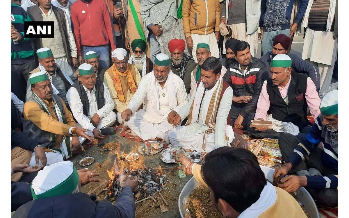 #WATCH पूर्व प्रधानमंत्री चौधरी चरण सिंह की जयंती के अवसर पर गाज़ीपुर बॉर्डर पर किसान 'हवन' करते हुए। #farmersday