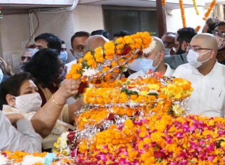राज्यपाल ने पूर्व मुख्यमंत्री श्री मोतीलाल वोरा के पार्थिव शरीर पर पुष्पचक्र अर्पित कर श्रद्धांजलि दी