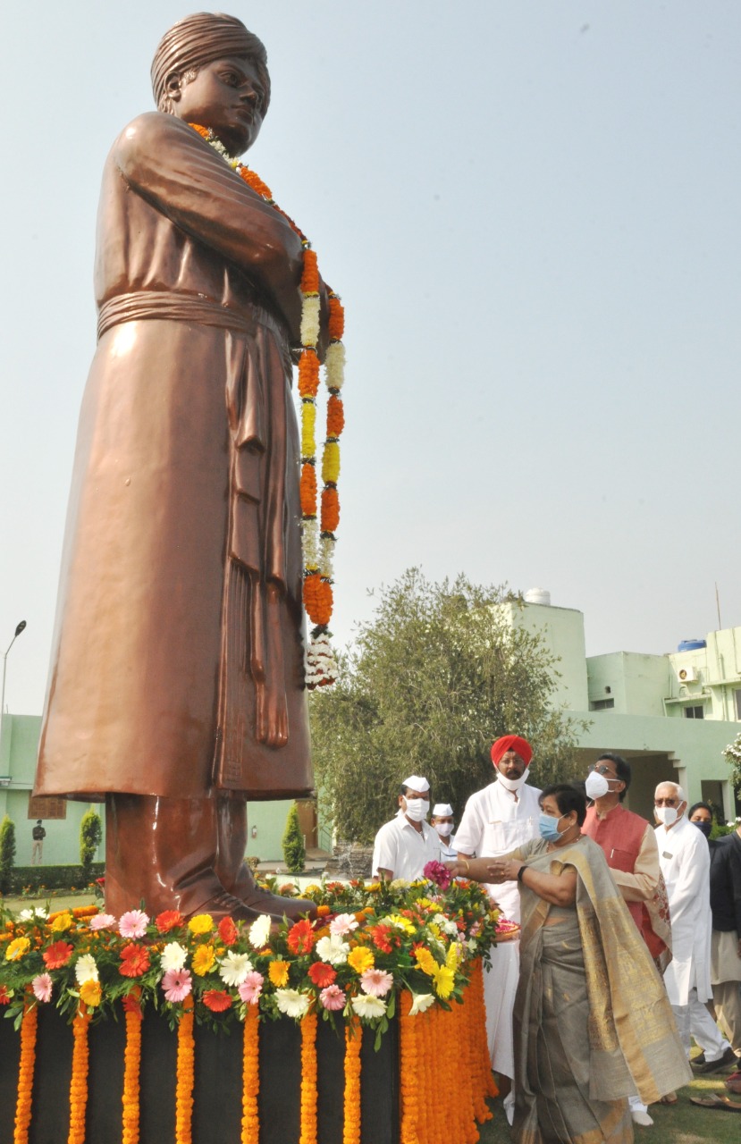 राज्यपाल सुश्री अनुसुईया उइके ने आज स्वामी विवेकानंद जी की जयंती के अवसर पर छत्तीसगढ़ विधानसभा परिसर में स्थित स्वामी विवेकानंद जी की प्रतिमा पर पुष्प अर्पित किया। इस अवसर पर विधानसभा अध्यक्ष श्री चरणदास महंत, कृषि मंत्री श्री रविन्द्र चौबे, वरिष्ठ विधायक श्री सत्यनारायण शर्मा और सांसद श्रीमती ज्योत्सना महंत उपस्थित थीं। राज्यपाल ने कहा कि आज स्वामी विवेकानंद की जयंती है। इस अवसर पर उन्हें मैं नमन करती हूं। स्वामी विवेकानंद ने पूरे देश को यह संदेश दिया था कि देश की युवा पीढ़ी ही देश को शक्तिशाली बना सकते हैं। वे युवाओं से कहते थे कि उठो, जागो तब तक ना रूको जब तक लक्ष्य की प्राप्ति न हो। आज हमारे युवा साथी स्वामी विवेकानंद को प्रेरणास्त्रोत मानकर राष्ट्र सेवा में लगे हुए हैं।