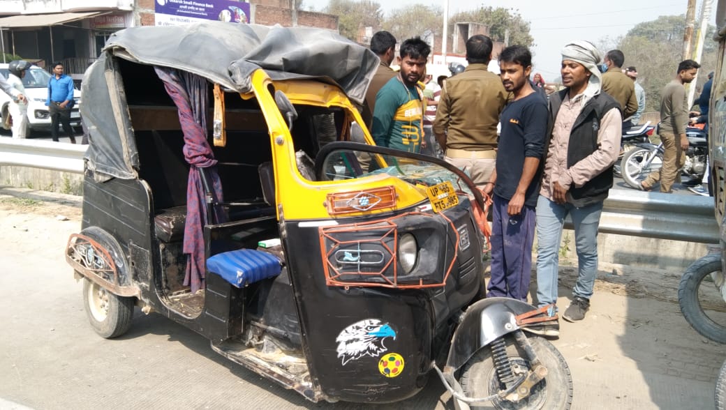 राजातालाब हाईवे पर अनियंत्रित ऑटो खड़ी ट्रक में भिड़ी, चार घायल