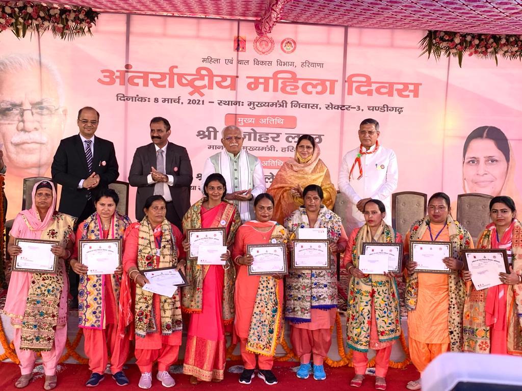 कार्यक्रम में शिक्षा मंत्री कंवरपाल गुर्जर, मुख्य सचिव विजय वर्धन, सीएम के अतिरिक्त प्रधान सचिव अमित अग्रवाल, उपप्रधान सचिव आशिमा बराड़, महिला एवं बाल विकास विभाग के आयुक्त डॉ़ राकेश गुप्ता एवं महानिदेशक डॉ़ रेणु फुलिया सहित कई अधिकारी मौजूद रहे। इस मौके पर मुख्यमंत्री ने अलग-अलग कैटेगरी में महिलाओं के उत्थान के लिए उल्लेखनीय कार्य करने वाली 29 महिलाओं को नकद पुरस्कार व प्रशंसा-पत्र देकर सम्मानित किया।