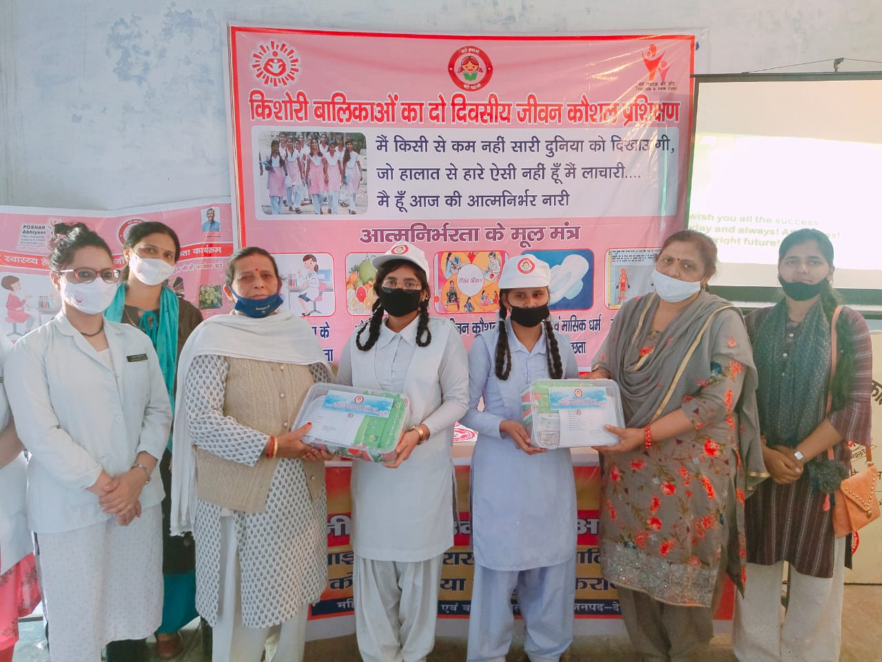 कार्यक्रम में किशोरियों का हीमोग्लोबिन टेस्ट, सूक्ष्म जलपान, आयरन फोलिक एसिड की टेबलेट, मास्क, कैप, किशोरी किट आदि वितरित की गई।
