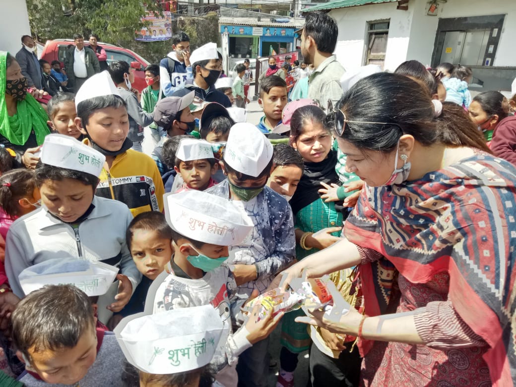 मसूरी में सामाजिक संस्था गूंज संस्था के अध्यक्ष डॉक्टर सोनिया आनंद ने मसूरी में गरीब बच्चों को पिचकारी गुलाल और मिठाई वितरित कर होली का तोहफा दिया। वही छोटे-छोटे बच्चों के साथ जमकर होली खेली। गूंज संस्था के अध्यक्ष डा.सोनिया आनंद ने कहा कि सभी लोग एक दूसरे के साथ होली खेलते हैं परंतु कई मासूम बच्चे ऐसे हैं जो काफी गरीब है जिनको पिचकारी तक नसीब नहीं होती है।