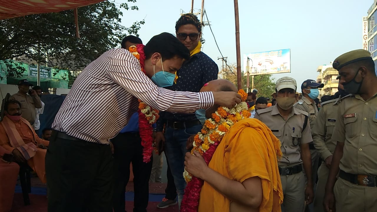 मेलाधिकारी दीपक रावत ने ज्योतिष एवं शारदा पीठाधीश्वर शंकराचार्य स्वामी स्वरूपानंद जी महाराज की मंगल शोभायात्रा का किया स्वागत