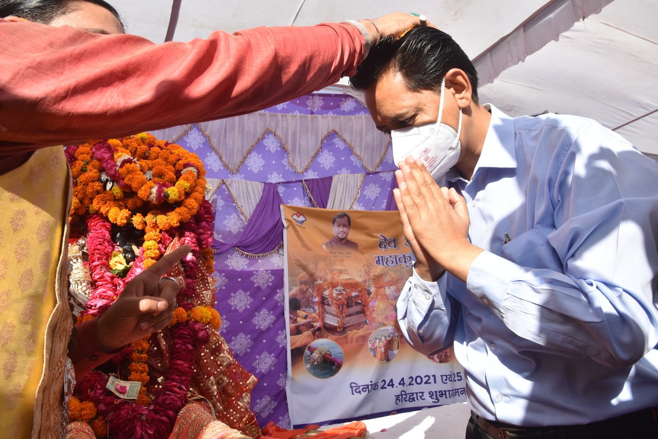 हरिद्वार, 25अप्रैल। श्री देवभूमि लोक संस्कृति विरासतीय शोभा यात्रा समिति की ओर से हरिद्वार महाकुंभ के शाही स्नान के लिए अलौकिक देवडोलियों के हरिद्वार के प्रेमनगर आश्रम में आने पर प्रदेश के पर्यटन एवं संस्कृति मंत्री सतपाल महाराज ने संयोजक मंडल के पदाधिकारियों के साथ विधिविधान से पूजन कर स्वागत किया। ढोल दमाऊ की धुन पर देवडोलियों के प्रेमनगर आश्रम में पहुंचने पर स्वागत हुआ। संयोजक महंत अनिल गिरि की मौजूदगी में कैबिनेट मंत्री सतपाल महाराज, सीडीओ सौरभ गहरवार , उप मेलाधिकारी दयानंद सरस्वती आदि ने बडोला जी वेलफेयर फाउंडेशन द्वारा संपादित पंचांग का विमोचन किया । कैबिनेट मंत्री सतपाल महाराज ने कहा कि कोविड को देखते हुए प्रधानमंत्री नरेंद्र मोदी के अपील पर देवडोलियों के आगमन और शाही स्नान को प्रतीकात्मक रूप से आयोजन किया गया है। यहां पर तीन देवडोलियों का स्वागत किया गया है और यही रविवार 25 अप्रैल को सुबह हरकी पैड़ी ब्रहमकुंड पर प्रतीकात्मक शाही स्नान करेंगी। भविष्य में संस्कृति विभाग इसे और भव्य रूप से आयोजित करेंगी। कहा कि प्रधानमंत्री नरेंद्र मोदी और मुख्यमंत्री तीरथ सिंह रावत को देवडोलियां आशीर्वाद देते हुए कोरोना महामारी को समाप्त करें यही प्रार्थना और विनती मैं देवडोलियों से करता हूँ। इस दौरान पूर्व कैबिनेट मंत्री मोहन सिंह रावत गांववासी अध्यक्ष झालीमाली देवी आश्रम, क्यूकालेश्वर पौड़ी गढ़वाल ने कहा कि यह कार्यक्रम पहाड़ की लोकसंस्कृति और धार्मिक आस्था को आगे बढ़ाने के लिए आयोजित किया जाता है। भविष्य में इसे और दिव्यता दी जाएगी। फिलहाल कोविड महामारी के चलते इसे प्रतीकात्मक स्वरूप देकर शाही स्नान के लिए देवडोलियां हरिद्वार में आई हैं। इस दौरान उपाध्यक्ष वंशीधर पोखरियाल, संस्थापक विद्यादत्त रतूड़ी, ज्योति सिंह सजवाण, संजय शास्त्री, शिवदत्त पैन्यूली, डीएस गुंसाई, महानिदेशक संस्कृति विभाग आशीष चौहान सहित श्रद्धालु गण मौजूद थे।