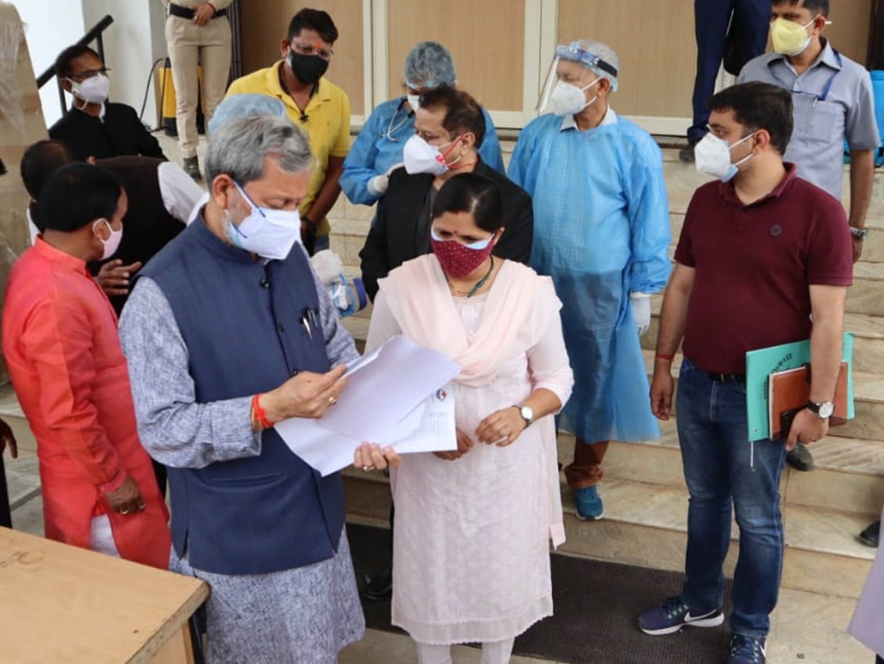 मुख्यमंत्री श्री तीरथ ने कहा कि पूरे प्रदेश में सैंपलिंग की संख्या को लगातार बढ़ाया जा रहा है। उन्होंने बताया कि बीते रोज ही केंद्र सरकार द्वारा सौ मैट्रिक टन ऑक्सीजन प्राप्त हुआ है। जिसे दोनों मंडलों में भेजने का कार्य किया गया है। मुख्यमंत्री ने कहा कि प्रदेश में पर्याप्त संख्या में ऑक्सीजन बेड, वैंटीलेटर, पीपीई किट एवं अन्य आवश्यक संसाधन उपलब्ध हैं। उन्होंने कहा कि पिछले कुछ दिनों में 345 नए चिकित्सकों की नियुक्ति की गई है। पहली बार सामुदायिक स्वास्थ्य केंद्र में भी चिकित्सकों को भेजा गया है। 18 से 45 वर्ष के सभी लोगों का निःशुल्क कोविड वैक्शीनेशन किया जा रहा है जिसमें खर्च होने वाली राशि करीब चार सौ करोड़ रुपए का वहन सरकार द्वारा किया जाएगा। पूरे देश में निःशुल्क वैक्सीनेशन करने वाला उत्तराखंड पहला राज्य है। उन्होंने सभी से वैक्शीनेशन करवाने की अपील की। साथ ही कहा कि सभी को अनिवार्य रूप से मास्क, सैनिटाइजर व सामाजिक दूरी का पालन करना होगा।