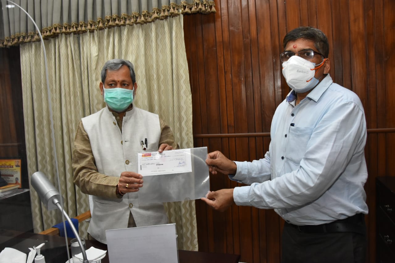 देहरादून, 20मई। कोविड-19 के दृष्टिगत पेयजल के चीफ इंजिनियर गढ़वाल श्री सुरेश चन्द्र पंत ने अपने वेतन से 01 लाख रूपये का चेक मुख्यमंत्री राहत कोष हेतु दिया। यह चेक उन्होंने मुख्यमंत्री श्री तीरथ सिंह रावत को सौंपा।