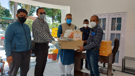 देहरादून 21 मई। देहरादून के कोविड प्रभारी मंत्री एवं प्रदेश के सैनिक कल्याण, औद्योगिक विकास, एमएसएमई, खादी एवं ग्रामोद्योग मंत्री गणेश जोशी ने बार एसोसिऐशन देहरादून के पदाधिकारियों को कोविड किट, आक्सीमीटर, थर्मामीटर, मास्क एवं सेनिटाइजर प्रदान किये।
