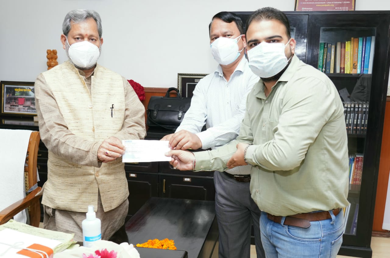 देहरादून, 22मई। कोविड-19 के दृष्टिगत सेलो इन्डस्ट्री हरिद्वार ने मुख्यमंत्री श्री तीरथ सिंह रावत को मुख्यमंत्री राहत कोष हेतु 05 लाख रूपये का चेक सौंपा। यह चेक सिडकुल हरिद्वार के रीजनल मैनेजर श्री जी. एस. रावत एवं सेलो इंडस्ट्री हरिद्वार के एच.आर. मैनेजर श्री विकल्प शर्मा ने मुख्यमंत्री को सौंपा।