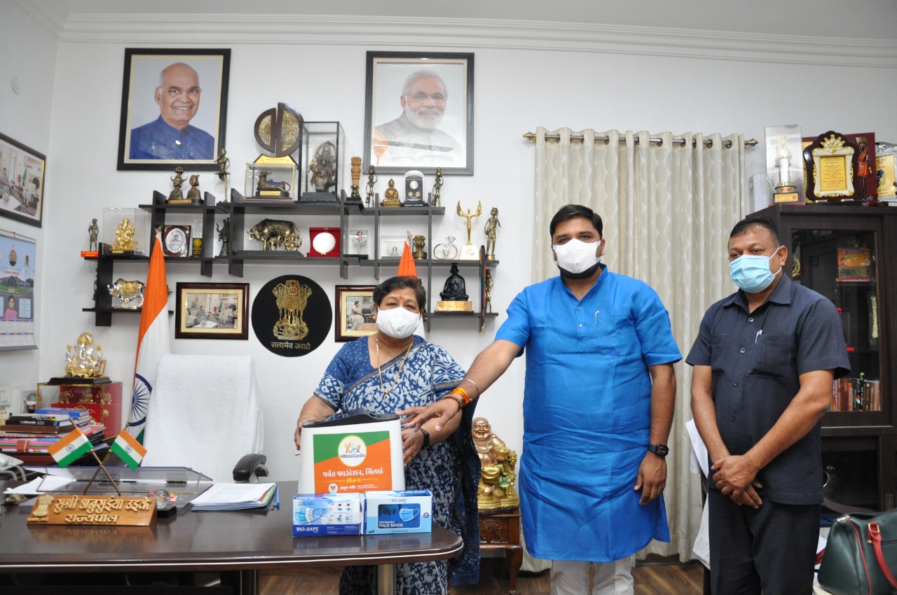 रायपुर, 7जून। राज्यपाल सुश्री अनुसुईया उइके को आज राजभवन में भिलाई केन डू पर्वत फाऊण्डेंशन के प्रमुख श्री अतुल पर्वत ने राजभवन के कर्मचारियों के लिए ऑक्सीजन कन्सनट्रेटर मशीन और मास्क प्रदान किए। उन्होंने राज्यपाल को कोरोना काल में उनके द्वारा किए गए कल्याणकारी कार्यो की जानकारी दी। राज्यपाल ने उन्हें धन्यवाद दिया और कहा कि इस त्रासदी के समय आपके और आपके संस्था के द्वारा जो मानवीय कार्य किया गया है वह सराहनीय है। ऐसे कार्यों से समाज को प्रेरणा मिलती है। श्री पर्वत ने बताया कि उनके द्वारा गत वर्ष 1100 परिवारों को भोजन वितरण किया गया और पुलिसकर्मियों को सहायता प्रदान की गई। साथ ही रायपुर और भिलाई में मास्क वितरण किए गए। उन्होंने बताया कि उनके द्वारा पुलिस स्टेशन में सेनिटाइजर मशीन वितरित किए गए।