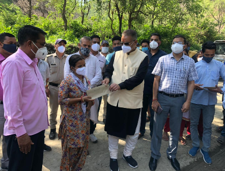 शनिवार को मालदेवता में मलवा हटाने के कार्य तथा एवं निर्माणाधीन सड़क पर सुरक्षा वायरक्रेट लगाने के कार्य की प्रगति का स्थलीय निरीक्षण करने ग्राउण्ड जीरो पर पहुंचे काबीना मंत्री ने आपदा प्रभावित परिवारों को चेक वितरित किए।