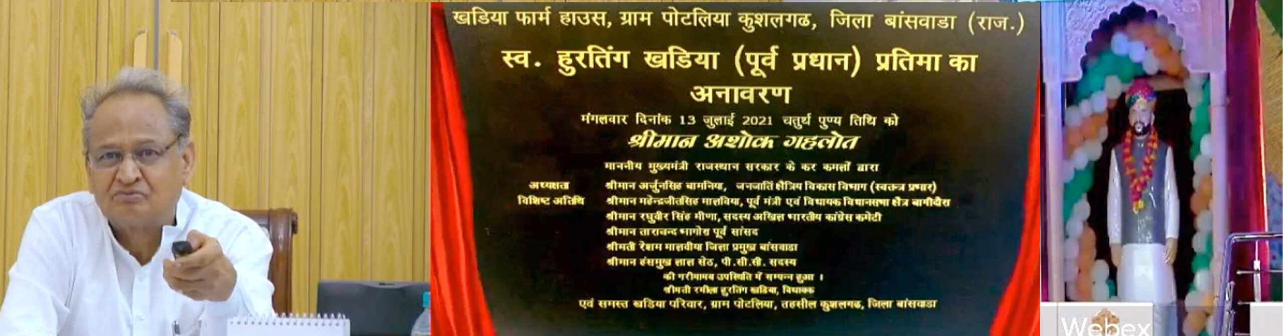 मुख्यमंत्री श्री अशोक गहलोत ने कुशलगढ़ के पूर्व प्रधान स्व. हुरतिंग खड़िया की मूर्ति का अनावरण किया