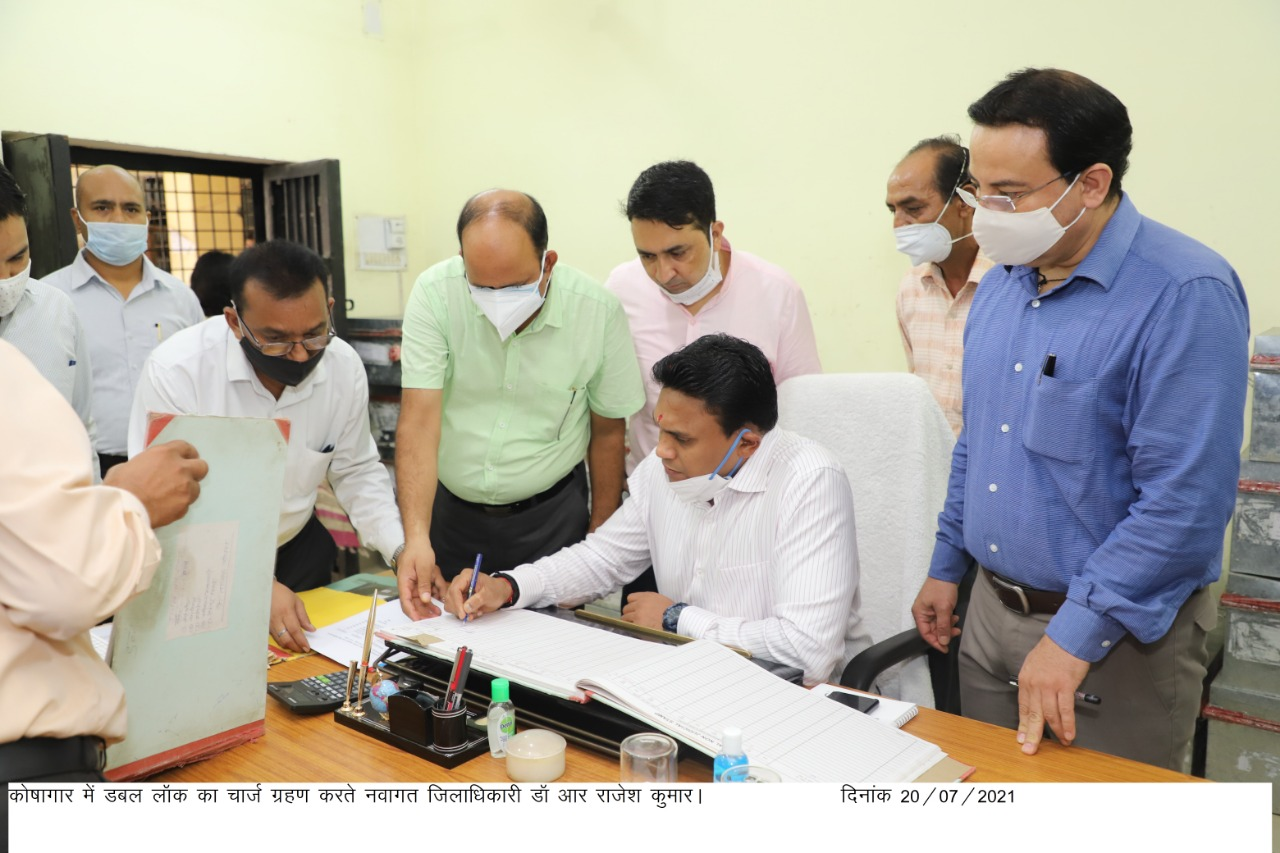 इसके उपरान्त जिलाधिकारी डॉ आर राजेश कुमार ने कोषागार पंहुचकर डबललॉक का निरीक्षण कर आवश्यक दस्तावेजों पर हस्ताक्षर कर कोषागार का चार्ज ग्रहण किया।