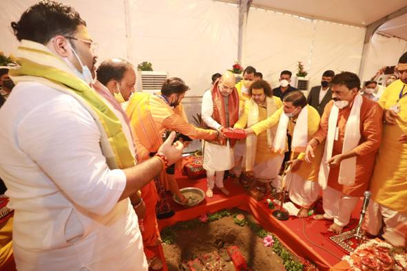 श्री अमित शाह ने कहा कि आपके ही आशीर्वाद से 2014 और 2019 में आपने जो पूर्ण बहुमत दिया उसके आधार पर आज मैं गर्व से यह कह सकता हूँ कि 550 साल से हम जो संघर्ष कर रहे थे कि अयोध्या मे राम मंदिर कब बनेगा मोदी जी ने अब इसके लिए एक ट्रस्ट न्यास की स्थापना कर दी है। कुछ ही समय में अयोध्या में आकाश को छूने वाले रामलला के भव्य मंदिर की शुरुआत होगी।श्री शाह ने कहा किउत्तर प्रदेश में पहले कुंभ में अव्यवस्थाएँ होती थी जिससे कई बार हादसे हो जाते थे।आज योगी जी की सरकार ने कुंभ को सुरक्षित बना दिया है। श्री अमित शाह ने कहा कि उन्होंने बचपन से कई कुंभ देखे हैं पर प्रयागराज जैसा भव्य कुंभ और व्यवस्था कहीं नहीं देखी।उन्होंने कहा कि पहले बाबाविश्वनाथ का दरबार देखकर मन उदास हो जाता था लेकिन आज मैं कहता हूँ कि बाबा का भव्य दरबार देखने का सौभाग्य हम सबको मिलेगा।किसी भी श्रद्धालु को जब बाबा का जलाभिषेक करना होगा तो उसे घुमकर जाने की ज़रूरत नहीं पड़ेगा ऐसे निर्माण की शुरुआत होगी।गृह मंत्री ने कहा कि चाहे ब्रज या चित्रकूट का विकास हो या फिर अयोध्या का दीपोत्सव हो योगी सरकार ने इन्हें पुनर्जीवित करके लोगों की वर्षों से अधूरी इच्छा की पूर्ति की है।