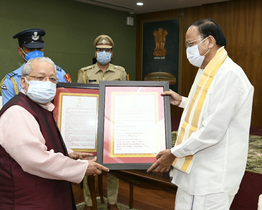 राज्यपाल श्री मिश्र ने इस दौरान उप राष्ट्रपति को संविधान की उद्देशिका एवं मूल कर्तव्यों की फोटो प्रति भी भेंट की।