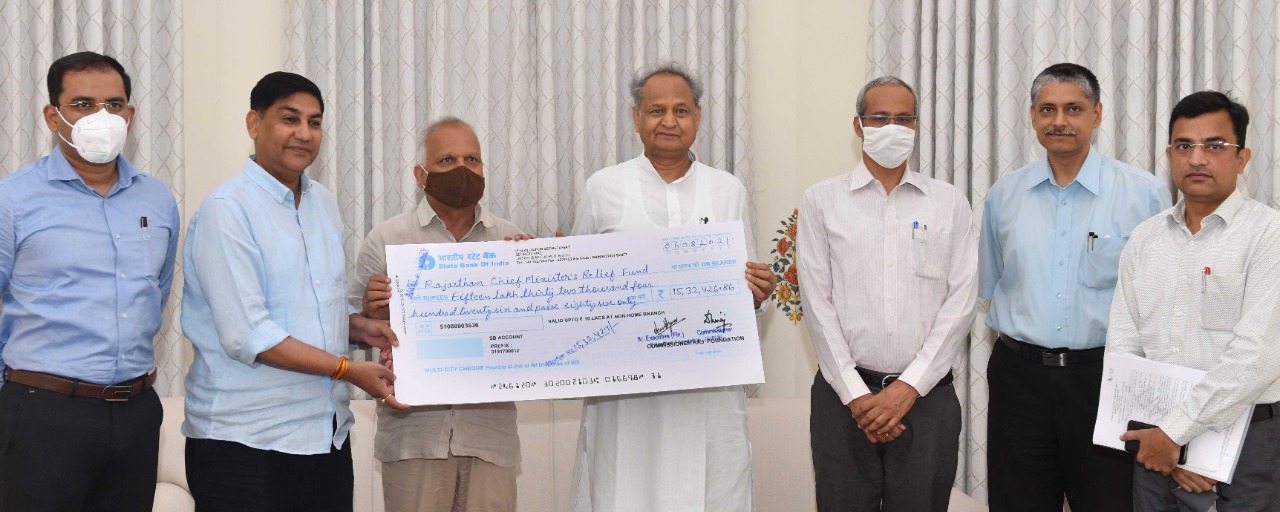 राजस्थान फाउंडेशन के आयुक्त श्री धीरज श्रीवास्तव ने राजस्थान के मुख्यमंत्री से मुलाकात कर प्रवासी राजस्थानियों द्वारा कोरोना महामारी के राहत कार्यो में सहयोग हेतु दान की गई राशि का सौंपा चैक