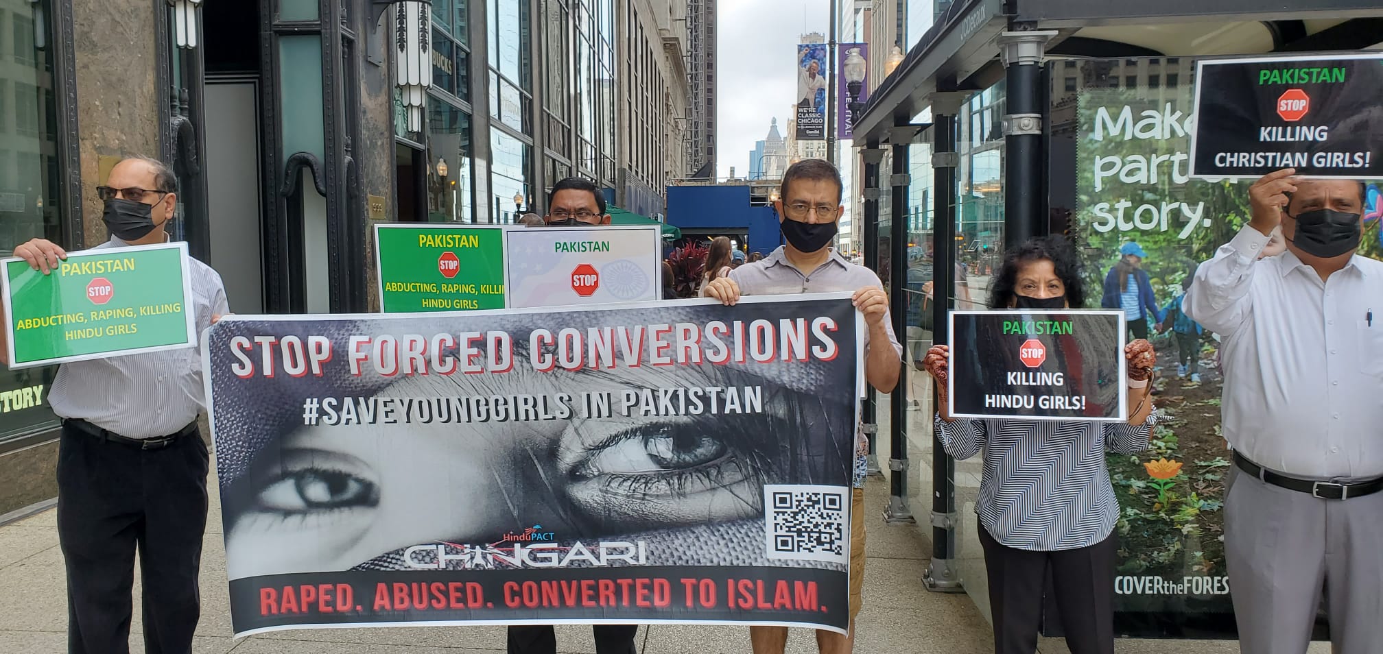 18 सितंबर, 2021 को, विभिन्न संगठनों के समुदाय के नेता 333 एन मिशिगन एवेन्यू, शिकागो में स्थित पाकिस्तान के शिकागो वाणिज्य दूतावास के बाहर युवा पाकिस्तानी लड़कियों और उनके परिवारों के साथ एकजुटता से खड़े होने के लिए एकत्र हुए – जिनमें से कई 12 से 17 वर्ष की आयु के बीच के हैं।