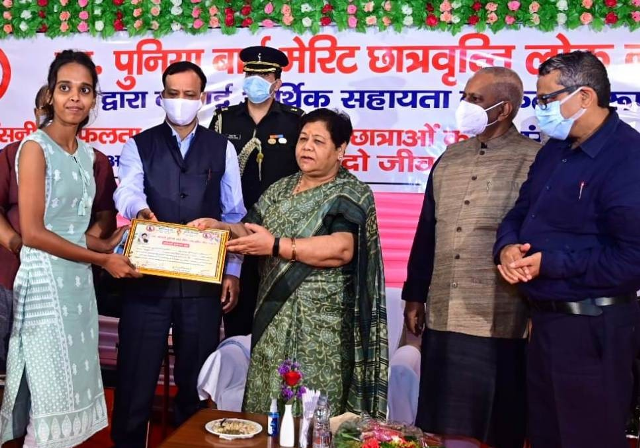 राज्यपाल ने स्वर्गीय श्रीमती पुनिया बाई जी को नमन किया और कहा कि उनकी याद में यह मेरिट छात्रवृत्ति लोक न्यास की स्थापना की गई है। इस संस्था द्वारा 12वीं उत्तीर्ण जरूरतमंद छात्राओं को आर्थिक सहायता प्रदान की जा रही है, जिससे वे आगे की पढ़ाई कर सके। मैं छात्रवृत्ति लोक न्यास के अध्यक्ष श्री शिवहरे को बधाई देती हूं, जिन्होंने इस पुनीत कार्य का बीड़ा उठाया है। शिक्षा देना और शिक्षा प्राप्त करने में सहयोग करना जैसे पुण्य कार्य कोई नहीं है। शिक्षित बेटी पूरे परिवार को शिक्षित करती है। इससे समाज में जागरूकता आती है और देश, प्रगति की राह में आगे बढ़ता है।