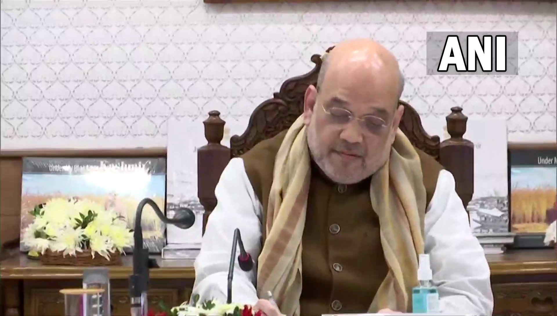 केंद्रीय गृह मंत्री अमित शाह ने श्रीनगर राजभवन में शीर्ष अधिकारी और सेना, सीआरपीएफ, पुलिस तथा अन्य एजेंसियों के साथ की बैठक