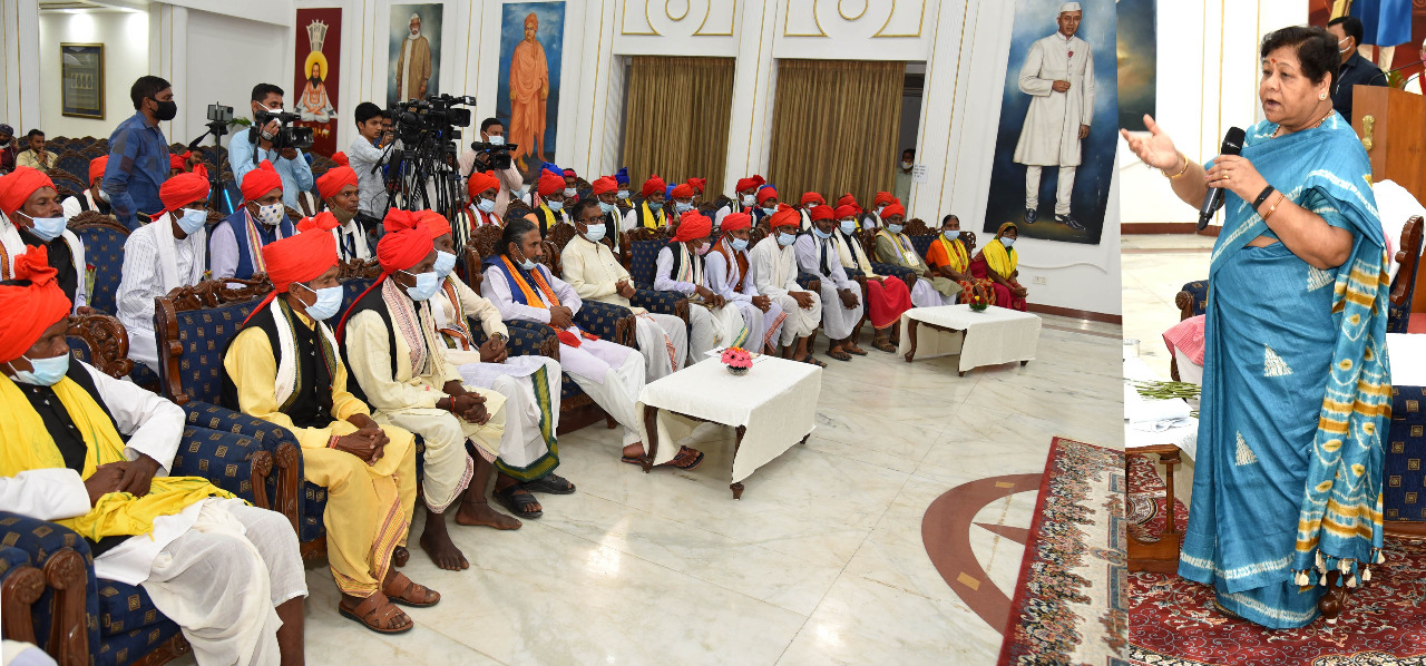 रायपुर, 31 अक्टूबर। राज्यपाल सुश्री अनुसुईया उइके से राजभवन में श्री कमलचंद्र भंजदेव के नेतृत्व में बस्तर संभाग के मांझी, चालकी, मेम्बर, मेम्बरिन के प्रतिनिधिमण्डल ने भेंटकर बस्तर क्षेत्र में हो रहे जबरन धर्मान्तरण के संबंध में ज्ञापन सौंपा। राज्यपाल ने कहा कि इस संबंध में क्षेत्र के अन्य सामाजिक संगठनों ने भी ज्ञापन दिया है और मैंने मुख्यमंत्री, गृहमंत्री और पुलिस महानिदेशक से कार्यवाही करने हेतु कहा है। उन्होंने कहा कि आदिवासी समाज में इस संबंध में जागरूकता लाना आवश्यक है कि बहलाफुसलाकर लोगों का धर्मान्तरण करना दण्डनीय अपराध है। समाज के लोगों को संगठित होकर इसे रोकने के प्रयास करने चाहिए। आज आदिवासी क्षेत्र में विकास की आवश्यकता है और इस हेतु सभी को आपसी भाईचारे से रहकर प्रयास करने होंगे। उन्होंने कहा कि धर्मान्तरण की शिकायतों की जानकारी स्थानीय प्रशासन को तत्काल देना चाहिए। उन्होंने कहा कि इस संबंध में वे राज्य शासन को निर्देश देंगी।