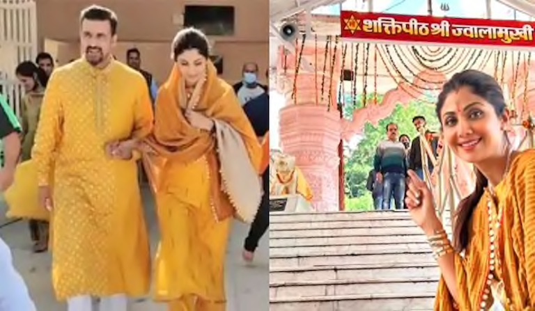 नई दिल्ली, 12नवंबर। बॉलीवुड एक्ट्रेस शिल्पा शेट्टी आजकल जमकर काम कर रही हैं और इसी दौरान एक्ट्रेस अपने काम से वक्त निकालकर पति राज कुंद्रा के साथ पहली बार स्पॉट हुई। जानकारी के मुताबिक राज कुंद्रा ने पत्नी शिल्पा शेट्टी के साथ हिमाचल प्रदेश के कांगड़ा जिले में शत्रुनाशिनी माँ बगलामुखी मंदिर बनखंडी में पूजा करवाया। इसके पहले शिल्पा शेट्टी अपने पति राज कुंद्रा के साथ चामुंडा देवी मंदिर व ज्वालामुखी मंदिर दर्शन करने पहुंची थी।