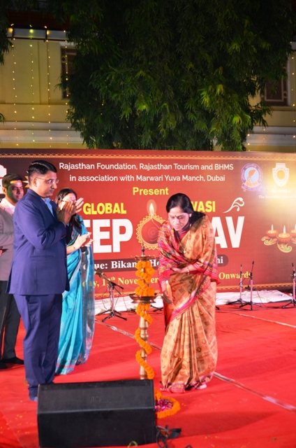 नई दिल्ली , 13 नवंबर। नई दिल्ली के बीकानेर हाउस स्थित चांदनी बाग परिसर में राजस्थान फाउंडेशन, राजस्थान पर्यटन विभाग, बीकानेर हाउस मैनेजमेंट सोसायटी और मारवाड़ी युवा मंच के संयुक्त तत्वाधान में ग्लोबल प्रवासी दीपोत्सव कार्यक्रम के साथ – साथ रंगारंग राजस्थानी सांस्कृतिक संध्या का आयोजन किया गया। इस सांस्कृतिक संध्या और ग्लोबल दीपोत्सव कार्यक्रम का लाइव प्रसारण यूट्यूब सहित संबंधित विभागों के सोशल मीडिया प्लेटफॉर्म पर किया गया। कार्यक्रम की शुरुआत मारवाड़ी युवा मंच दुबई के अध्यक्ष श्री रविंद्र अग्रवाल के स्वागत स्पीच के साथ-साथ दुबई एक्सपो में शामिल होने गए राजस्थान फाउंडेशन के कमिश्नर श्री धीरज श्रीवास्तव के उद्बोधन भाषण से हुई। नई दिल्ली के बीकानेर हाउस परिसर में दीप प्रज्वलन प्रिंसिपल रेजिडेंट कमिश्नर श्रीमती शुभ्रा सिंह और निदेशक, पर्यटन श्री निशांत जैन, सहायक आवासीय आयुक्त श्री मनोज सिंह की अगुवाई में तथा दुबई से श्री धीरज श्रीवास्तव और मारवाड़ी युवा मंच के साथ-साथ दुनिया के विभिन्न हिस्सों में बसे प्रवासी राजस्थानियों की उपस्थिति में एक साथ हुआ, जिसमें दुनिया भर के प्रवासी राजस्थानियों ने एक साथ दीप जलाकर राजस्थान की धरती के साथ अपने भावनात्मक जुड़ाव का परिचय दिया।