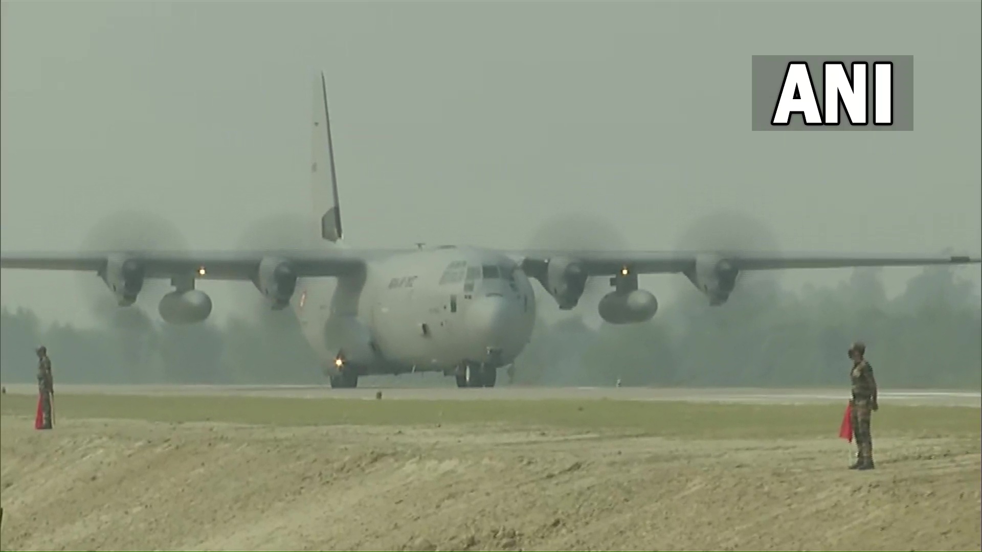 Prime Minister Narendra Modi's C-130J Super Hercules lands at Karwal Kheri in Sultanpur district; he will inaugurate the 341 Km long Purvanchal Expressway shortly. pic.twitter.com/7xGWz1IWmE