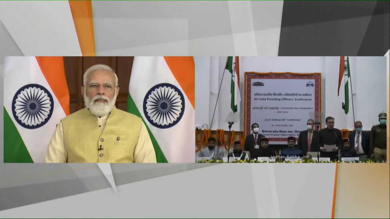 नई दिल्ली , 17 नवंबर। प्रधानमंत्री श्री नरेन्द्र मोदी ने आज यहां 82वें अखिल भारतीय पीठासीन अधिकारियों के सम्मेलन के उद्घाटन सत्र को वीडियो कॉन्फ्रेंसिंग के जरिए संबोधित किया। इस अवसर पर लोकसभा अध्यक्ष, मुख्यमंत्री हिमाचल प्रदेश और राज्यसभा के उपसभापति भी उपस्थित थे।