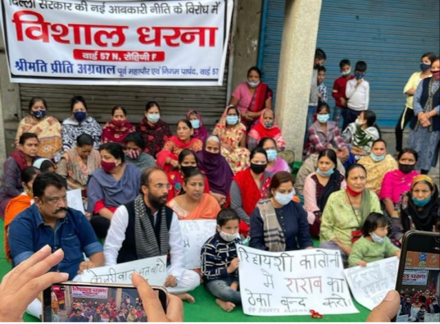 दिल्ली सरकार की नई आबकारी नीति के तहत रिहायशी इलाकों में शराब की दुकानों को नियमों की अनदेखी कर समाज, महिलाओं, बच्चों और युवाओं में शराब बांटकर, महिलाओं की पहचान और सुरक्षा को ठेस पहुंचाकर, युवाओं को गुमराह कर शराब की दुकानें खोली जा रही हैं।
