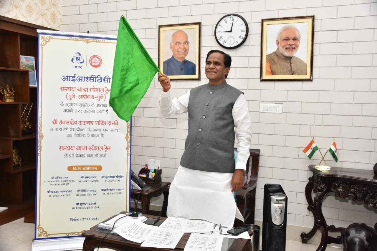 पुणे, 27 नवंबर। केंद्रीय रेल राज्य मंत्री रावसाहेब दानवे ने आज पुणे को अयोध्या से जोड़ने वाली रामपथ यात्रा विशेष ट्रेन को झंडी दिखाकर रवाना किया। दानवे ने वीडियो कांफ्रेंसिंग के जरिए स्पेशल ट्रेन को झंडी दिखाकर रवाना किया।