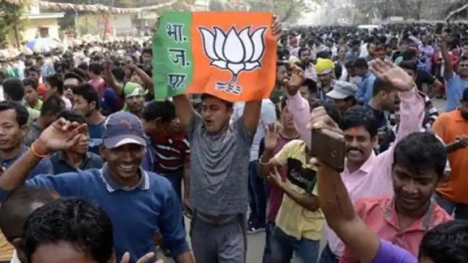 त्रिपुरा में बीजेपी की भारी जीत के बाद कार्यकर्ताओं में खुशी की लहर है। कार्यकर्ता ढोल बजाकर जश्न मना रहे है।