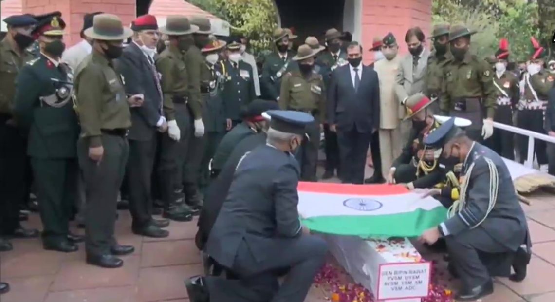 गृह मंत्री अमित शाह, राष्ट्रीय सुरक्षा सलाहकार अजीत डोभाल और कांग्रेस नेता राहुल गांधी और कई अन्य गणमान्य लोगों ने शुक्रवार को जनरल रावत और उनकी पत्नी के पार्थिव शरीर पर माल्यार्पण किया।