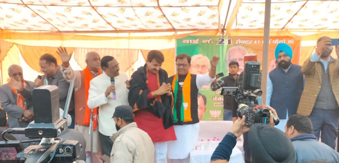 चंडीगढ़, 20 दिसंबर। सांसद मनोज तिवारी, पूर्व सांसद सत्यपाल जैन और दवेश मौदगिल ने वार्ड संख्या 21 से भाजपा प्रत्याशी दवेश मौदगिल के पक्ष में चंडीगढ़ के गांव फैदान में विशाल जनसभा को संबोधित किया।