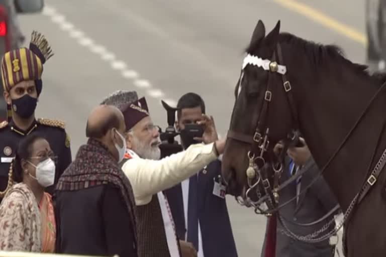 नई दिल्ली, 26 जनवरी। राष्ट्रपति के बेड़े के विशेष घोड़े ‘विराट’ को प्रेजिडेंट्स बॉडीगार्ड के चार्जर के तौर पर भारतीय सेना ने विशेष सम्मान दिया है। विराट को अपनी योग्यता और सेवाओं के लिए चीफ ऑफ आर्मी स्टाफ कॉमनडेशन कार्ड से सम्मानित किया गया है। विराट यह प्रशस्ति पत्र प्राप्त करने वाला राष्ट्रपति के अंगरक्षक बेड़े का पहला घोड़ा है।