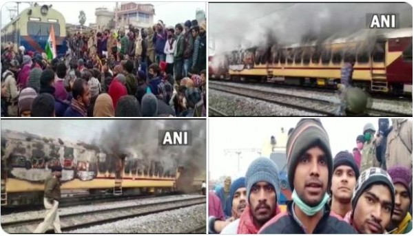 पटना, 27 जनवरी। रेलवे भर्ती परीक्षा आरआरबी एनटीपीसी सीबीटी-1 के परिणाम लेकर युवाओं का विरोध अब हिंसक प्रदर्शन में बदल गया है। बिहार के कई जिलों में रेलवे भर्ती बोर्ड के खिलाफ प्रदर्शन करने के लिए छात्र लगातार पटरियों पर उतर रहे हैं। बिहार में पिछले तीन दिनों ले लगातार अलग-अलग स्थानों पर ट्रेन की बॉगियों में आग लगाने से लेकर ट्रेन को रोके जाने की खबरें सामने आई हैं। इतना ही नहीं पुलिस और छात्रों के बीच कुछ जगह पथराव की भी खबरें सामने आई हैं। प्रशासन की हिदायत और रेल मंत्री के भरोसा देने के बावजूद छात्र मानने के लिए तैयार नहीं हैं। वहीं इस बीच जानकारी सामने आई है कि पटना के खान सर समेत कई संस्थानों के खिलाफ पटना में एफआईआर दर्ज की गई है।