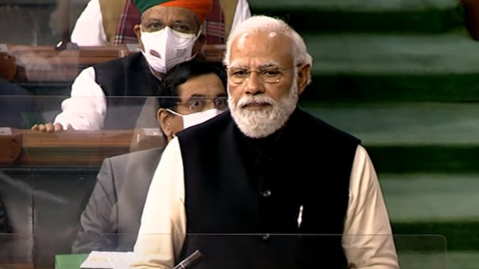 प्रधानमंत्री ने कहा कि दिल्ली में ऐसी सरकार है, जिसने माइक बांध कर ऐलान करवाया कि सभी मजदूर घर जाएं। यूपी, उत्तराखंड, पंजाब में लोग कांग्रेस के पाप के कारण कोरोना की चपेट में आए। प्रधानमंत्री ने कहा कि बीते दो साल से पूरी दुनिया 100 साल का सबसे बड़ा वैश्विक महामारी का संकट झेल रही है। इस कोरोना को भी दलगत राजनीति के लिए प्रयोग किया गया, ये मानवता के लिए सही नहीं है। मोदी ने विपक्ष पर तंज कसते हुए कहा कि उल्टी टोपी क्यों पहन रहे हैं। प्रधानमंत्री के बयान इस पर सदन में विपक्ष ने हंगामा शुरू कर दिया।