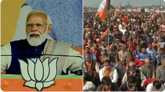 पीएम मोदी ने कहा कि केंद्र सरकार गरीबों के लिए घर बनाने की योजना चलाती है। उन्होंने कहा किसानों को आत्मनिर्भर बनाना चाहते हैं। पिछली सरकारों पर हमला बोलते हुए कहा कि कुछ लोग सिर्फ परिवारवाद का भला चाहते है। प्रधानमंत्री ने कहा हमने किसानों के खाते में सीधे पैसे भेजे हैं। मोदी ने कहा भाजपा अपने संकल्पों को पूरा करके दिखाती है। कहा यूपी में सिर्फ कानून व्यवस्था का राज होना चाहिए।