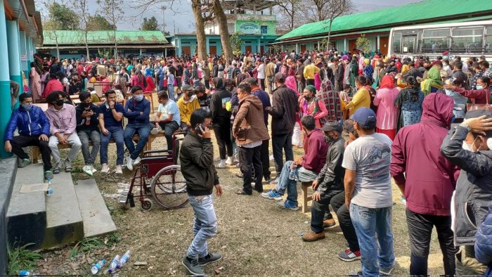 खंगाबोक में मतदान केंद्र पर लगी लोगों की कतारें